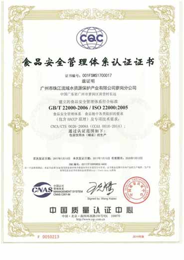 食品安全管理体系认证证书
